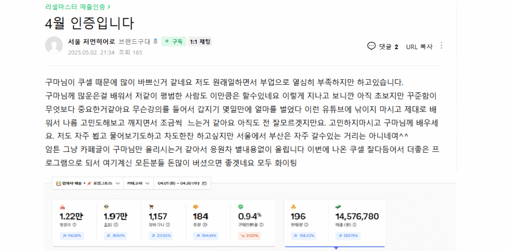 이렇게 매출내신분들의 인증이 수없이 많습니다